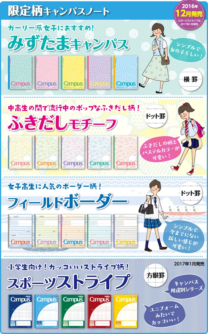 KOKUYO於2017年推出限定封面,共有對話雲/馬賽克條紋/粉色系條紋/簡約時尚風,