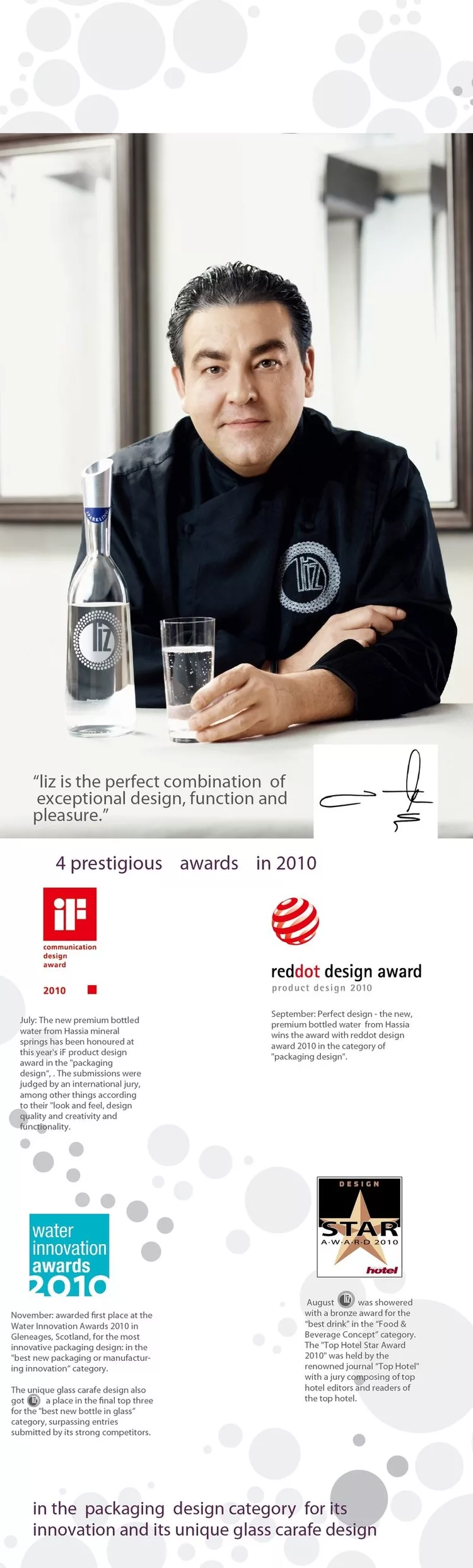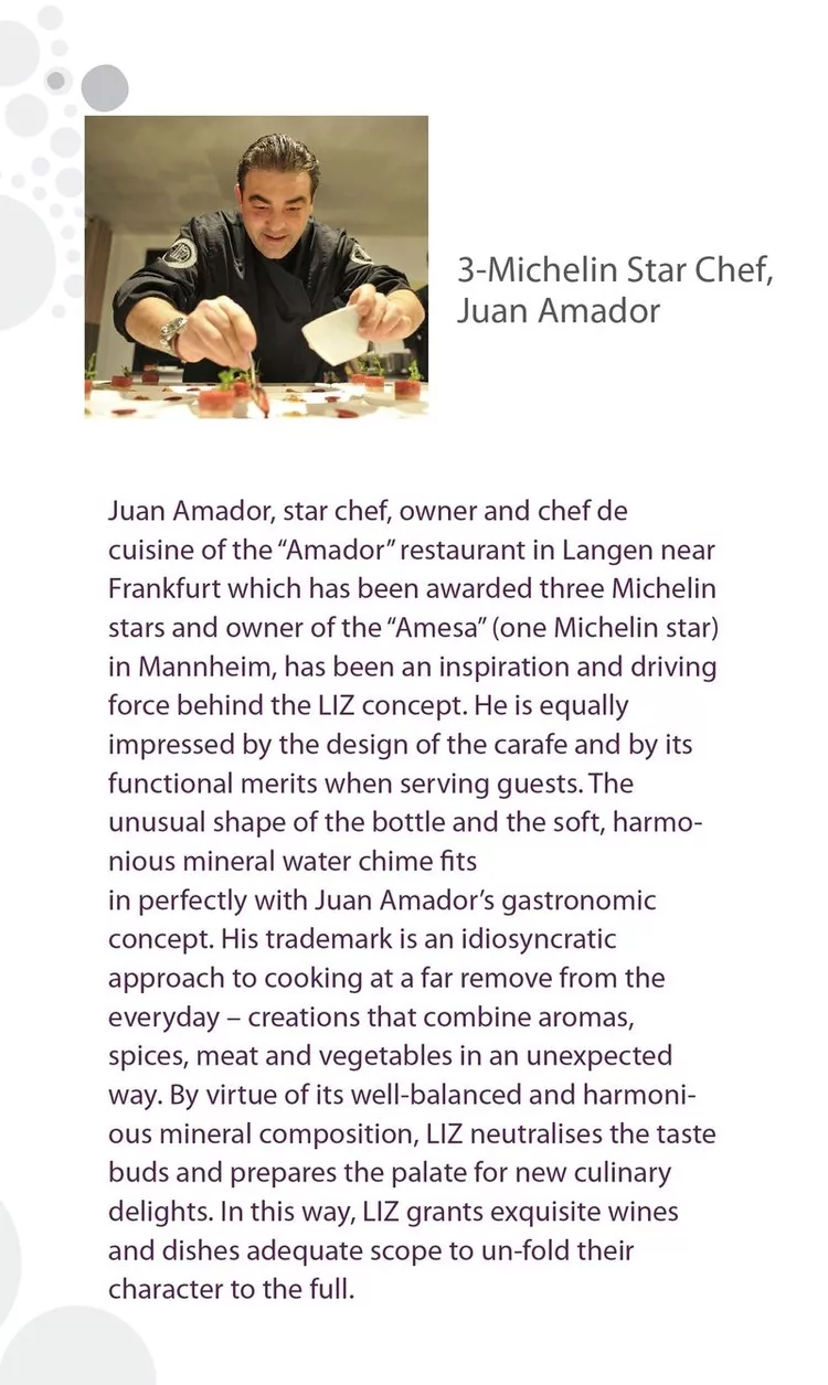 米其林三星餐廳主廚 Juan Amador說: liz是出色的設計、功能和愉悅的完美結合