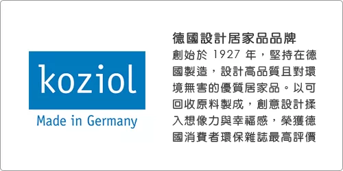 1927 年創始於純淨的德國奧登森林區。Koziol 僅設計生產高品質且對環境無害的優質居家品,並以負責的態度維護人類與環境的和諧。商品以可回收原料製,輔以創意詼諧的設計,揉入想像力與幸福感,這也是此品牌之所以榮獲德國消費者環保雜誌最高評價的原因。Better design,Bigger smile 是 Koziol 堅信的價值。