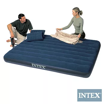 【INTEX】雙人加大植絨充氣床墊(寬152cm)-特惠組合(附手壓幫浦+枕頭-2)