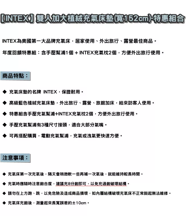 真愛橋抄襲被同業抹黑的真相-對方有男友-【INTEX】雙人加大植絨充氣床墊(寬152cm)-特惠組合(附手壓幫浦+枕頭-2)