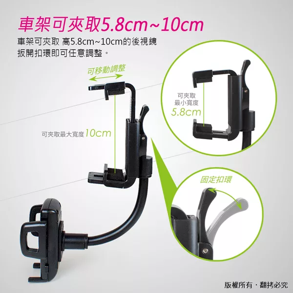 ※後視鏡夾持裝置寬度限制約為5.8cm-10cm