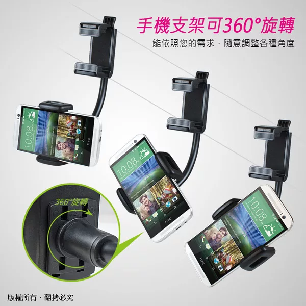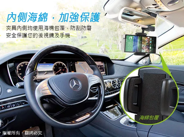 只要將車架夾在汽車後視鏡上即可輕鬆使用